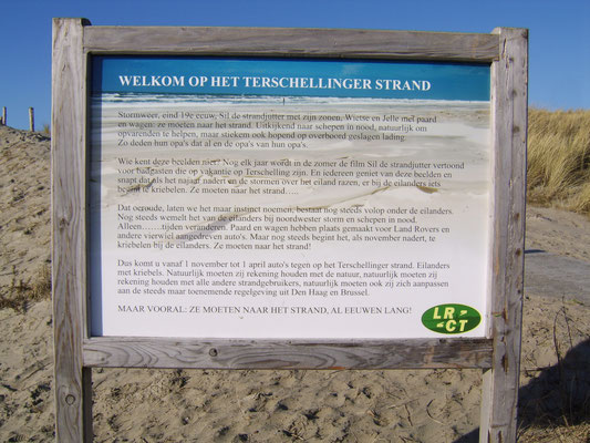 Dit zijn de informatieborden die de Land Rover Club Terschelling heeft geplaatst nabij de strandopgangen op Terschelling. Het doel is begrip te kweken voor de aanwezigheid van auto’s op het Terschellinger strand gedurende de wintermaanden.
